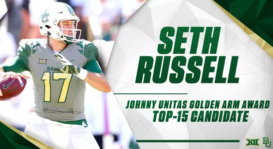 BALTIMORE -- Baylor senior quarterback Seth Russell is one of 15 quarterbacks, who remains on The Johnny Unitas Golden Arm Award watch list following a trimming of the original 43-man list Thursday.