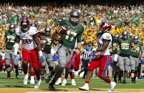 With Baylor nursing a 15-point lead late in the fourth quarter, Seth lowers his head, trying to pick up a critical first down on third-and-five from Iowa State's 21-yard line. Coming up just a yard short of moving the chains, he takes a devastating helmet-to-helmet blow from safety Jomal Wiltz.