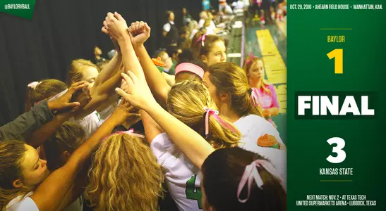 MANHATTAN, Kan. - Baylor volleyball (18-7, 6-3 Big 12) fell short on the road to the Kansas State Wildcats (17-6, 6-4 Big 12), 22-25, 25-21, 13-25, 20-25, Saturday evening at the Ahearn Field House.