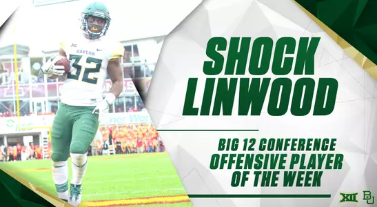 IRVING, Texas ÃÆ' ¢Ãƒ ¢' ¬" After rushing for a career-best 237 yards, Baylor senior running back Shock Linwood was named the Big 12 Conference Offensive Player of the Week, conference officials announced Monday.