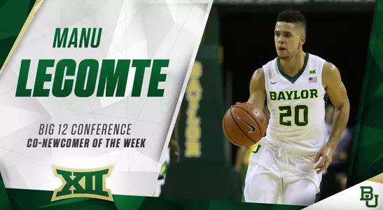 IRVING, Texas -- Baylor men's basketball junior point guard Manu Lecomte has been named Phillips 66 Big 12 Conference Co-Newcomer of the Week, as voted on by a panel of media members and announced Monday by the conference office.
