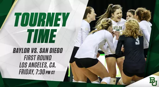 WACO, Texas - The Baylor volleyball team (21-11, 9-7 Big 12) secured the program's fifth-ever NCAA Tournament berth, paired in the Los Angeles regional for the first and second round, hosted by the No. 10 UCLA Bruins. The Bears will face San Diego (24-5) on Friday, Dec. 2 at 7:30 p.m. CT/5:30 p.m. PT.