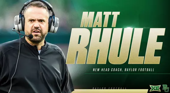 WACO, Texas -- Baylor University Vice President and Director of Intercollegiate Athletics Mack Rhoades IV announced today the appointment of Matt Rhule as the 27th Baylor Head Football Coach. Rhule comes to Waco after four seasons as the head coach at Temple University, where he led the Owls to consecutive 10-win seasons in 2015 and 2016 and the 2016 American Athletic Conference championship.