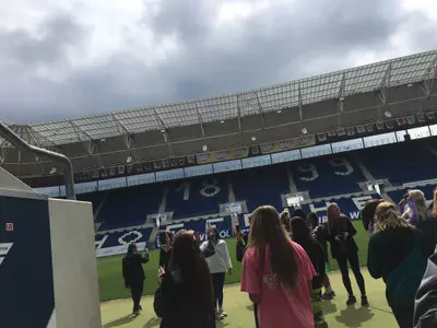 Entry No. 3 From Freshman Ariel Leach -- Starting off in Sinsheim, we spent the morning immersed and learning about the Bundesliga club TSG 1899 Hoffenheim. We were given a private tour of the men's stadium, Wirsol Rhein-Neckar Arena.