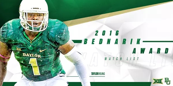 PHILADELPHIA ÃÆ' ¢Ãƒ ¢' ¬" Baylor junior linebacker Taylor Young has been named to the 2016 Chuck Bednarik Award watch list, The Maxwell Football Club announced Tuesday. The Bednarik Award has been presented to the College Defensive Player of the Year since 1995.