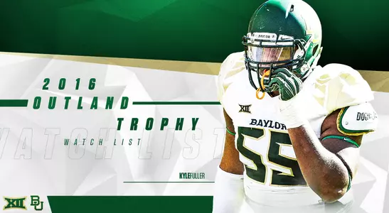 WACO, Texas -- Baylor senior center Kyle Fuller was tabbed to the 2016 Outland Trophy watch list, the Football Writers Association of America announced Friday. The Outland Trophy is presented annually to the nation's most outstanding interior lineman on offense or defense.