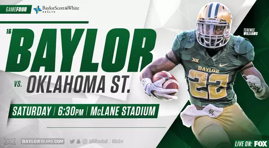- In its first Big 12 game of 2016, Baylor hosts Oklahoma State Saturday at 6:30 p.m. on FOX.