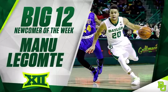 IRVING, Texas ÃÆ' ¢Ãƒ ¢' ¬" Baylor junior guard Manu Lecomte has been named the Phillips 66 Big 12 Conference Men's Basketball Newcomer of the Week, as voted on by a panel of media members and announced Monday by the conference office.