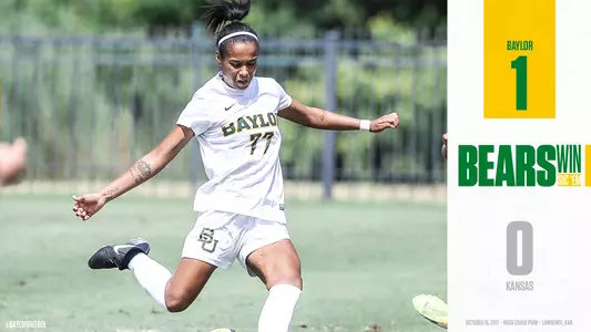 LAWRENCE, Kan. - Baylor soccer (10-3-2, 4-2-1 Big 12) fought off a second half rally, taking a 1-0 win over the Kansas Jayhawks (7-7-2, 2-3-1 Big 12) on Sunday afternoon at Rock Chalk Park.