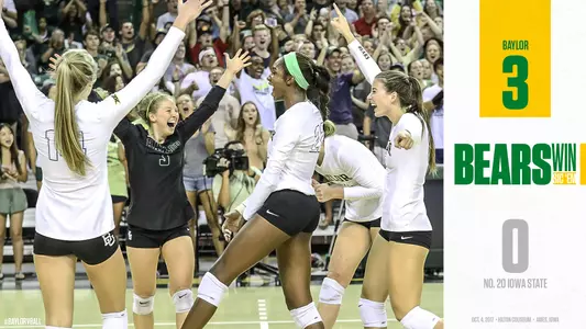 It was Baylor's first road sweep of the Cyclones (11-3, 2-2) in 16 years and the first win over a ranked opponent on the road since Nov. 12, 2011, at No. 25 Oklahoma. The Bears also won back-to-back matches at Iowa State for the first time since the 2004-05 seasons, beating the Cyclones, 3-2, last year.