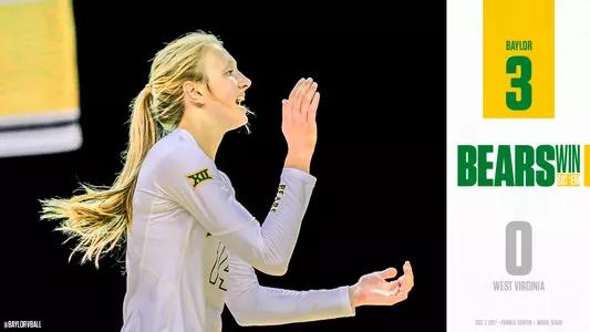 Baylor and West Virginia (12-6, 1-4) went blow-for-blow in the first set with four lead changes and 10 ties before the Bears took control with a 6-1 run that included a Katie Staiger ace and kills by Staiger and Camry Freiberg.