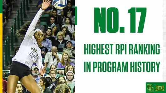 WACO, Texas -- For the second-straight week, No. 23 Baylor volleyball collected its highest RPI ranking in program history, earning the No. 17 spot in the standings released by the NCAA Monday morning.