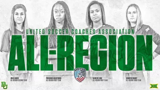 WACO, Texas - Baylor soccer added more accolades to its remarkable 2017 season, with four student-athletes named to the United Soccer Coaches All-South Region teams, announced Tuesday by the organization.