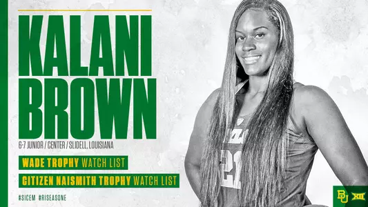 WACO, Texas ÃÆ'Æ'à € ' ¢ÃƒÆ'Æ' ¢' ¬" Baylor women's basketball center Kalani Brown is in consideration for the 2018 Citizen Naismith Trophy and the 2017 Wade Trophy, the organizations announced on Wednesday. Each award recognizes the national player of the year.