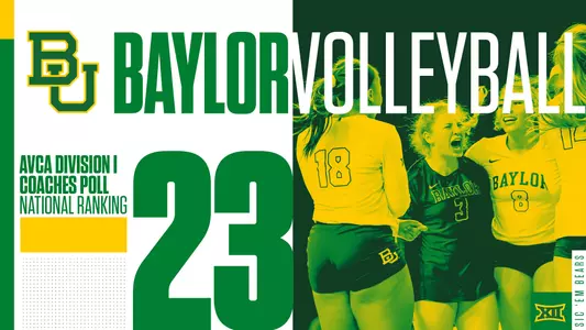 The 2017 Bears are the first Baylor team since 2009 to make an appearance in the poll. During that season, BU was ranked for 10 straight weeks and peaked at No. 17, which still stands as the program high ranking in the 35-year history of the AVCA poll.