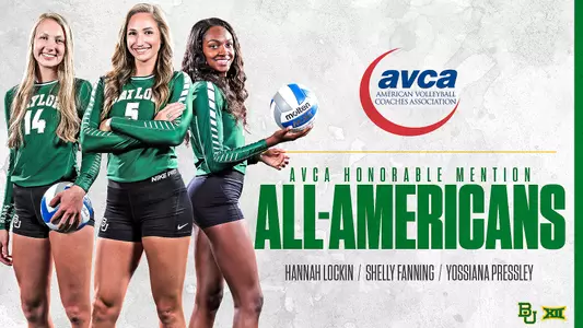 KANSAS CITY, Mo. -- Baylor volleyball's Shelly Fanning, Yossiana Pressley and Hannah Lockin were named 2017 AVCA Division I Honorable Mention All-Americans, released by the organization Wednesday morning.