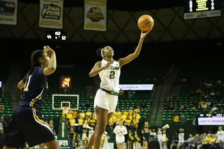 Despite coming off a seven-day break for semester final exams, there were certainly no signs of rust as the Lady Bears jumped out to a 27-3 lead in the first eight minutes, with Kalani Brown capping a 19-0 run with a three-point play. Brown added her fifth double-double of the season with 17 points and 16 rebounds, but the national leader in field goal percentage shot below 50 percent for the first time all year (8-of-17).