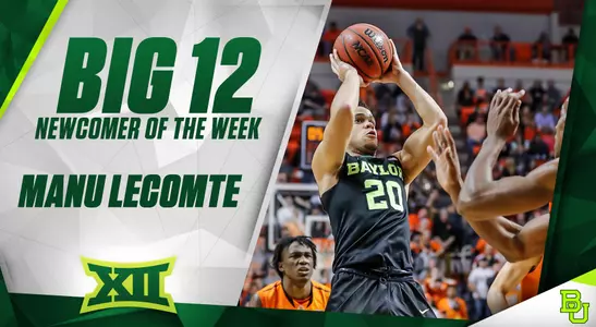 IRVING, Texas ÃÆ' ¢Ãƒ ¢' ¬" Baylor junior guard Manu Lecomte has been voted the Phillips 66 Big 12 Conference Men's Basketball Newcomer of the Week for a third time this season, the conference office announced Monday.
