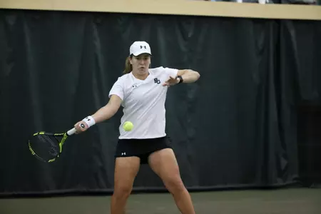 With a 1-0 advantage, Baylor did not let up in singles action, winning the next three points with two-set victories to clinch. Shakhraichuk scored first, earning a 6-3, 6-1 win over Ann Selim at No. 5 singles. Sophomore Elizabeth Profit followed suit with a 6-2, 6-4 victory against Malene Stripp in the No. 3 slot.