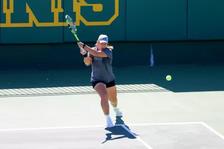 Tulsa notched the first two singles points with consecutive wins at the No. 2 and No. 3 spots to take the lead. At the No. 2 singles position, R. Leenabanchong defeated No. 105 senior Rhiann Newborn, 6-4, 6-1. Martina Okalova followed with a sweep of sophomore Elizabeth Profit, 6-1, 6-4, at the No. 3 spot.