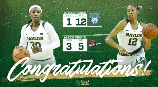 Alexis Jones became the seventh first round draft pick in school history. The Minnesota Lynx selected the guard with the 12th overall pick. Guard Alexis Prince, the 13th WNBA Draft pick all-time at Baylor, was selected 29th overall and fifth in the third round by the Phoenix Mercury. Baylor has had 13 players drafted all-time, all under the direction of head coach Kim Mulkey. The program boasts seven first round selections and six third picks.