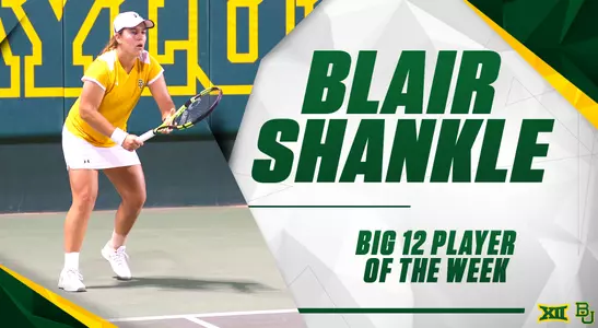 WACO, Texas ÃÆ' ¢Ãƒ ¢' ¬" Baylor women's tennis senior Blair Shankle was selected Big 12 Player of the Week for the third time this season on Monday afternoon. The Dallas, Texas, native has earned a total of six weekly conference honors in her career.