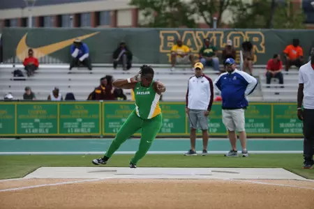 Senior Cion Hicks starred for BU as she set the school record in the shot put with a heave of 56-9.25 [17.30m]. The Copperas Cove, product fouled on her first attempt and then popped the BU and stadium record throw on her second toss. Hicks' mark is fourth-best in the NCAA for 2017. She improved on her personal best mark of 56-1 [17.09m], which she set at the 2016 Big 12 Championship, while bettering the school record mark (56-3.75 [17.16m]) of Skylar White from 2011.Hicks also finished second in the discus later in the day with a best throw of 163-6 [49.85m].