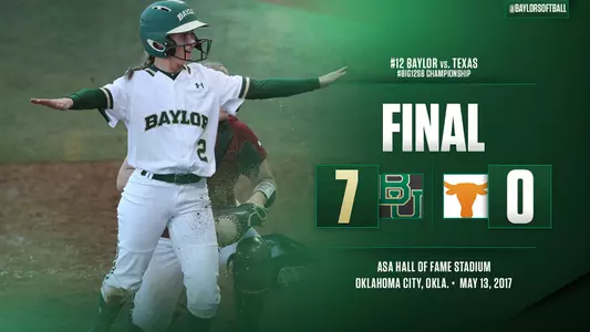OKLAHOMA CITY, Okla. - No. 12/16 Baylor softball (43-12) cruised to a dominating 7-0 win over the Texas Longhorns (31-24), winning the third place game to close out play in the Big 12 Softball Championship on Saturday afternoon at ASA Hall of Fame Stadium.