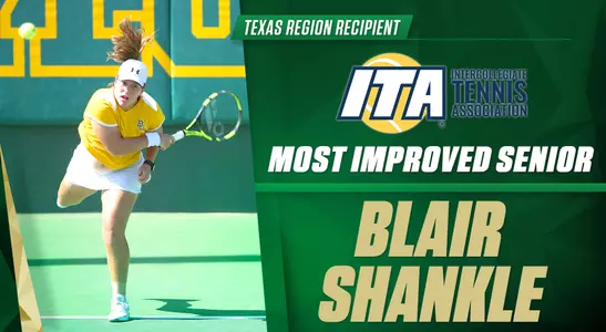 TEMPE, Ariz. ÃÆ'Æ' ¢ÃƒÆ' ¢' ¬" Baylor women's tennis senior Blair Shankle received the Intercollegiate Tennis Association (ITA) Women's Division I Texas Region award for Most Improved Player (Senior) on Tuesday. With the honor, she remains in consideration for the ITA Most Improved Player (Senior) national award announced on Tuesday, May 23.