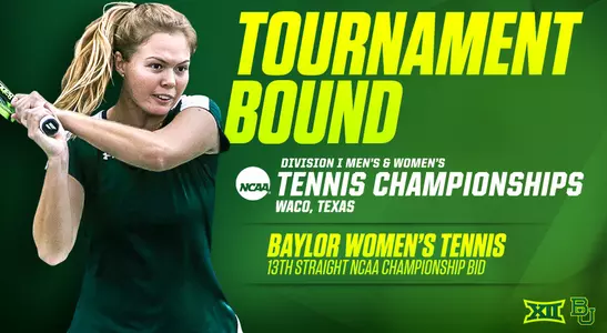 WACO, Texas -- No. 15-ranked Baylor women's tennis earned its 13th-straight and 20th overall selection to the NCAA Tennis Championship, as announced on NCAA.com on Tuesday afternoon. The Lady Bears, the No. 16 seed overall, will host Texas A&M-Corpus Christi, No. 20 Texas A&M and Louisiana-Monroe in first and second round action at Hurd Tennis Center on May 13-14.