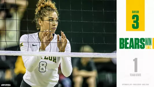 The momentum stayed with Baylor in the third set as Texas State hit -.286 for three kills, fueling a 2-1 match advantage.