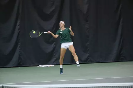 The Bears got off to a strong start, securing the doubles point. Sophomore Angelina Shakhraichuk and freshman Dominika Sujova topped Maria Linares and Rosanna Maffei, 6-1, and freshman Georgia Testa and senior Theresa Van Zyl bested Anna Turco and Ines Mesquita, 6-3, to earn the advantage.