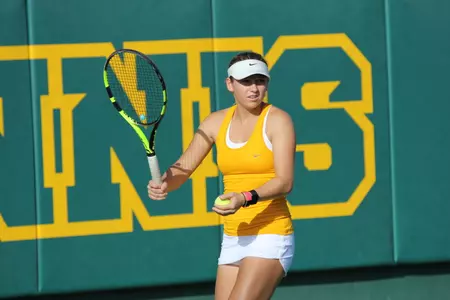 Oklahoma State earned singles victories on courts three and five with scores of 6-3, 6-1, and 6-2, 7-5. The Cowgirls clinched the match with a three-set win at the No. 1 spot, 6-3, 3-6, 6-1.