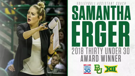 LEXINGTON, Ky. -- The American Volleyball Coaches Association (AVCA) has named Baylor volleyball assistant coach and recruiting coordinator Samantha Erger a Thirty Under 30 Award winner, announced by the organization Thursday morning.