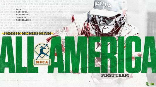 OKLAHOMA CITY - Baylor's Jessie Scroggins was named the 10th All-American in Baylor history, voted to the National Fastpitch Coaches Assocation (NFCA) All-America first team, announced by the organization on Wednesday afternoon during a press conference at the Women's College World Series.
