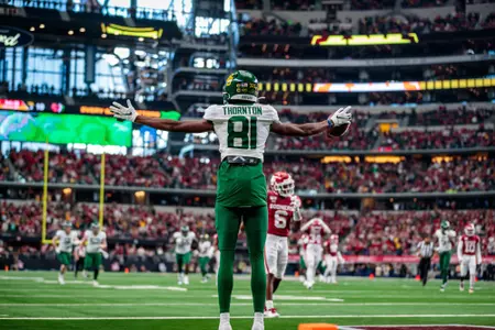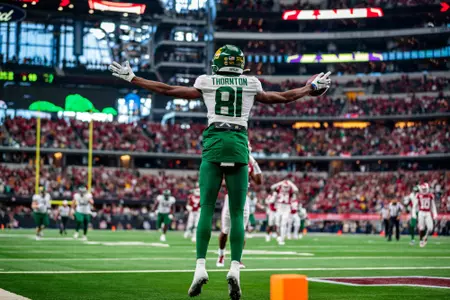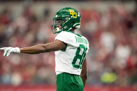2021 (Senior): Started all 14 games ... Led the team with 62 receptions and 10 touchdowns ... Ranked 10th all-time on BU’s career receiving yards list (2,242) ... 19 career touchdowns is tied for 8th on Baylor's all-time leader board ... Ranked 14th in career receptions at Baylor (143) ... All-Big 12 Second Team (WR) - AP and Coaches ... Preseason Third Team All-Big 12 selection by Phil Steele ... NFLPA Collegiate Bowl Big Board selection ... Finished third in the Big 12 in receiving yards (948) ... Finished fifth in the Big 12 in yards per catch (15.3) ... Finished sixth in the Big 12 in yards per game (67.7) ... Opened the season with five catches for 46 yards at Texas State (9/4) ... Had his second-career 100-yard receiving game against Texas Southern catching 5 passes for 103 yards and tying a single-game hig with two touchdowns (9/11) ... Had three catches for 31 yards at Kansas (9/18) ... Caught three passes for 44 yards and a touchdown against Iowa State (9/25) ... Tallied three catches for 52 yards including a 44 yarder at Oklahoma State (10/2) ... Surpassed 100-career receptions on Oct. 2 at OSU, becoming the 22nd Bear all-time to achieve the feat ... Went for career-best 187 yards and 2 TDs against WVU (10/9), the most receiving yards by a Baylor WR in a single game since Denzel Mims’ 192 against Oklahoma in 2017 ... Notched five catches for 84 yards in a BU win over BYU (10/16) ... Recorded five catches for 54 yards against Texas (10/30) ... In that game, Thornton threw a TD to RJ Sneed in 1st Quarter of game - Baylor’s first passing TD by a non-QB since 2015 ... Matched a career-high with two touchdowns to go with five catches and 121 at TCU (11/6) ... Tallied four catches for 41 yards and a touchdown in an upset win over Oklahoma (11/13) ... Recorded five catches for 75 yards in a road win at Kansas State (11/20) ... Had four catches for 37 yards in home finale (11/27) ... Caught six passes for 71 yards and a touchdown in the Big 12 Championship Game (12/4) ... Had one catch that went for a touchdown in Baylor's Sugar Bowl win over Ole Miss (1/1).